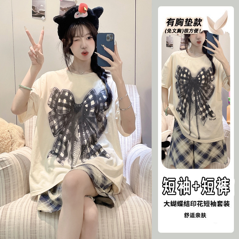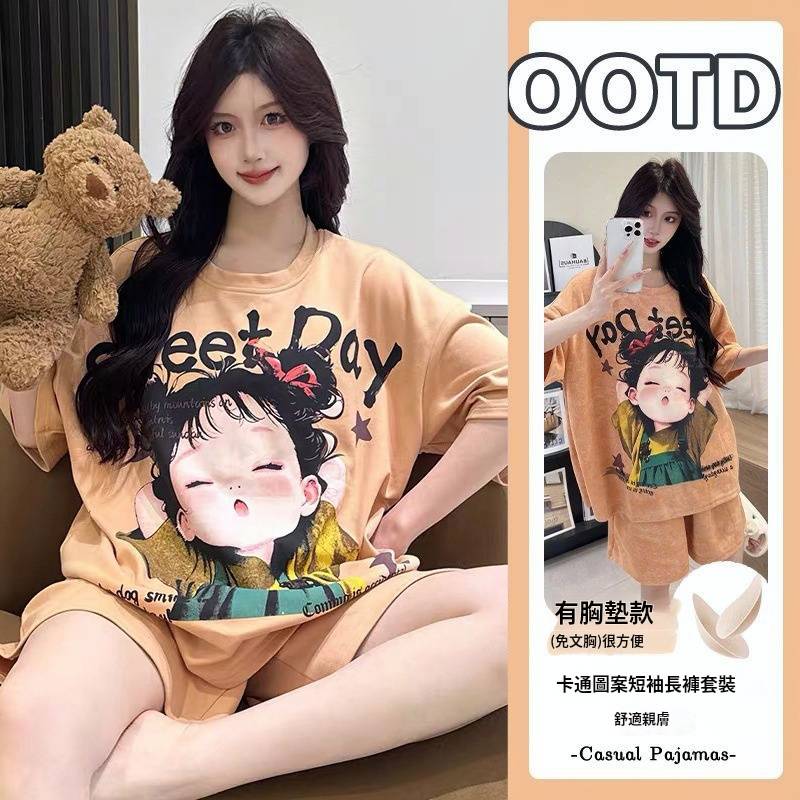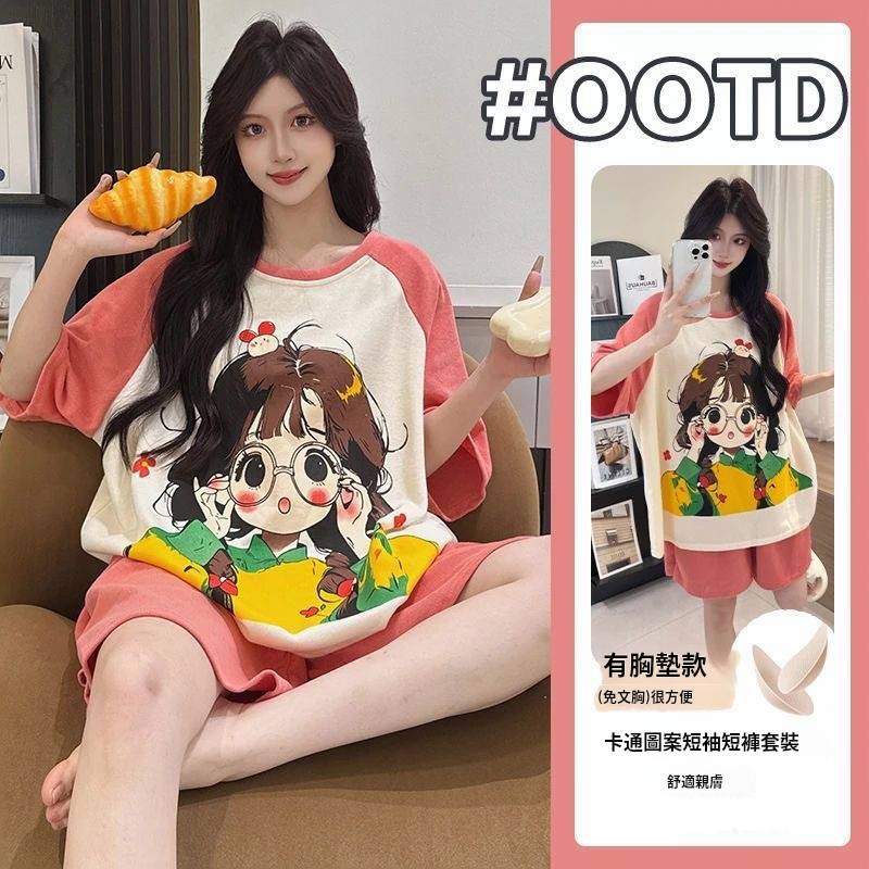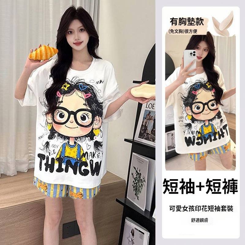 2025年新款自帶胸墊一體睡衣,短褲寬鬆設計,什麼身材都能穿,可愛圖案盡顯年輕,自帶胸墊可外穿可居家,夏天穿太方便了,解决了夏日在家穿內衣黏膩的煩惱!